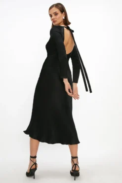 Tie up special occasion styling dilemmas with this stunning dress. In a swathe of silky satin, this bow-backed beauty promises to keep you looking – and feeling – elegant, all night long.
