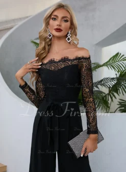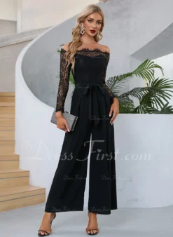 Cold Shoulder Elegant Jumpsuit/Pantsuit Polyester Ankle-Length Dresses