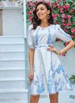 Be the first to review “Floral Print Scoop Vacation A-line Polyester Midi Dresses” Cancel reply